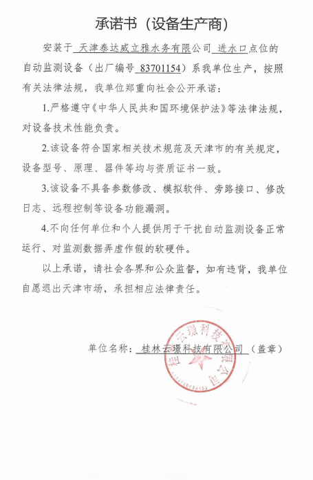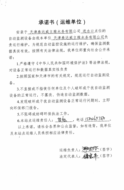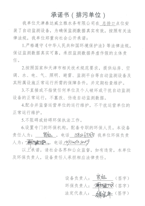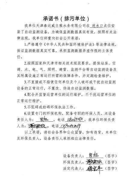自2014年,依《國家重點監控企業污染源監督性監測及信息公開辦法(試行)》,主要污染物排放情況經天津市重點企業自行檢測數據發布系統對外公布,主動接受社會公眾監督。